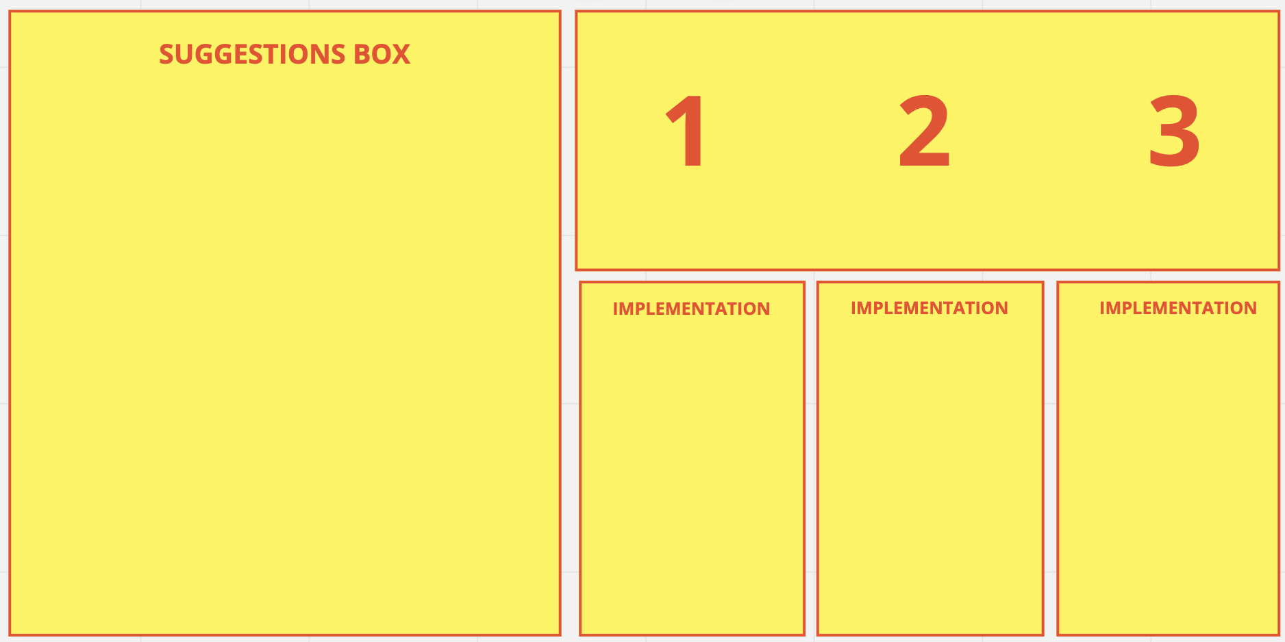I made a frame on the team Miro board, using the typical Saitama yellow, red and white. Although these colours are rather alarming, your typical everything-is-on-fire yellow and red alert, I chose them because they are calming for me, and they remind me that I can stay in control and overcome the obstacle of trying to let everyone be heard while navigating the group towards a concensus on a topic I care about. I will defeat this meeting in one punch!